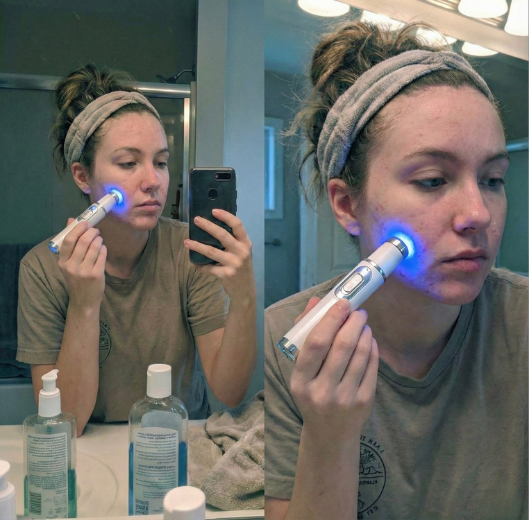 OMG!! why did nobody tell me about blue light therapy. I have struggled with acne literally my whole life, name it, I've tried it. i found this tiktok one day talking about what acne really is and how blue light therapy which is non invasive works. long story short, I no longer have acne, I do not need expensive creams or treatments.