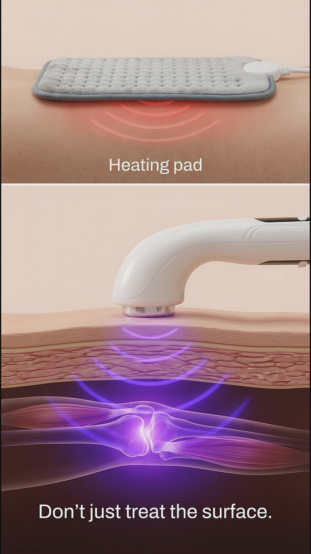 Delivers clinical-grade 1MHz ultrasound waves that penetrate deep into tissue to relieve chronic joint pain, relax stiff muscles, and reduce inflammation at the source."